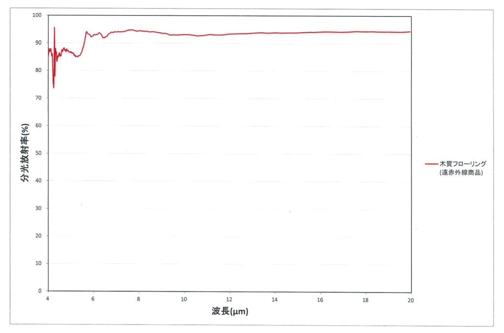遠赤外線分光放射率・FT-IR法を用いて、JUST TOUCH の表面から出ている遠赤外線エネルギーを放射させる度合いを数値化しました。