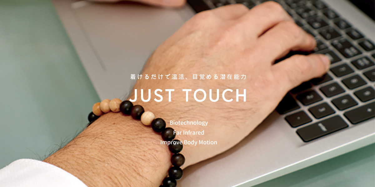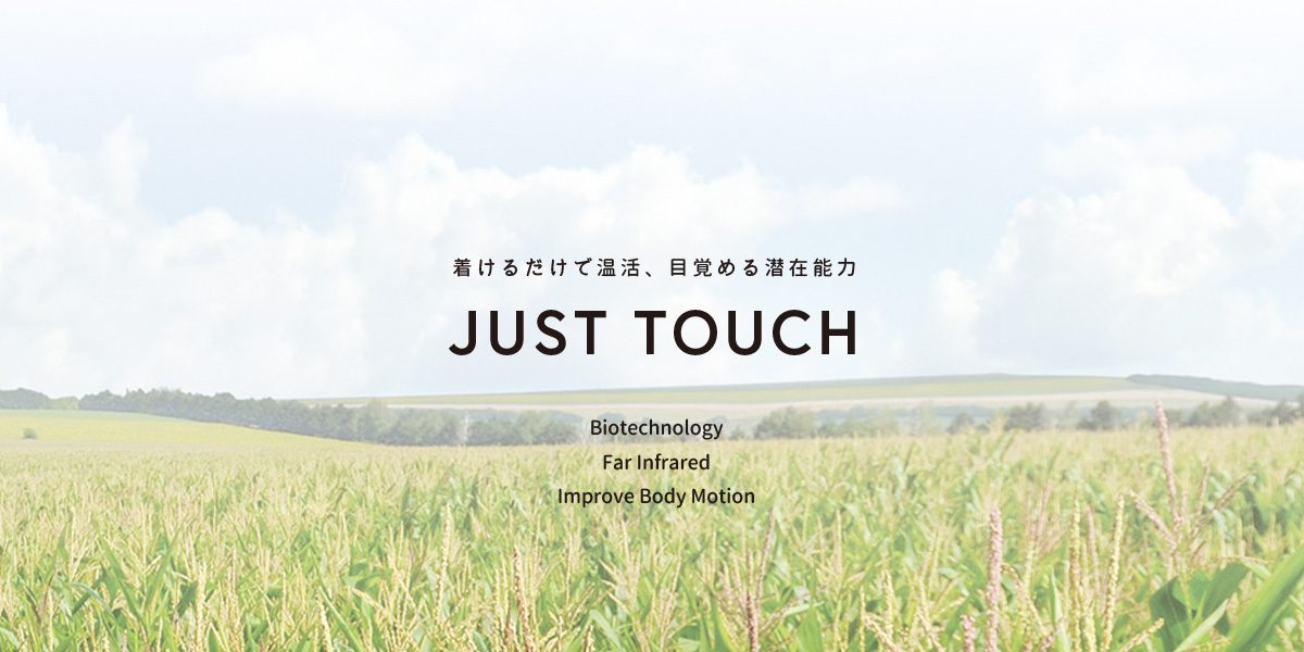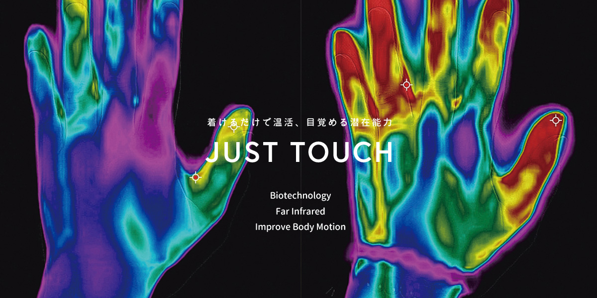 常温で遠赤外線を発する植物由来の成分がコーティングされているJUST TOUCHは、輻射熱の効果を活かして、身に着けるだけで体を温めます。